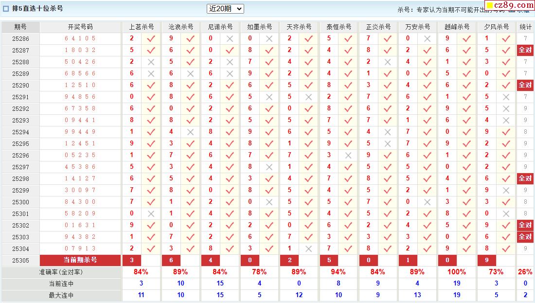 25年305期澳客专家体彩P5杀号定码推荐